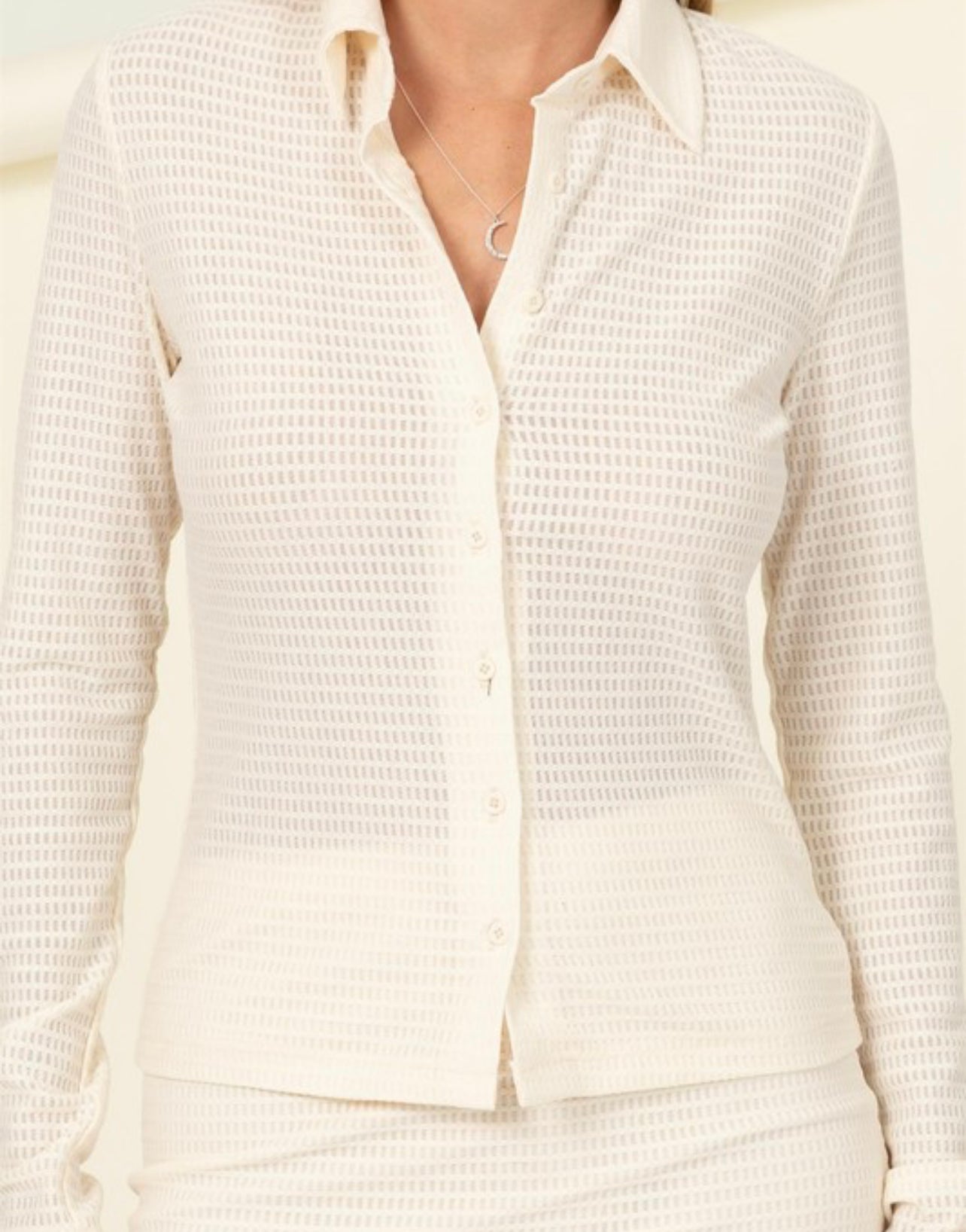 Made with a curve-sculpting bodice. Top collared neckline, long defined sleeves and button-up front. The matching skirt will hug your hips beautifully.